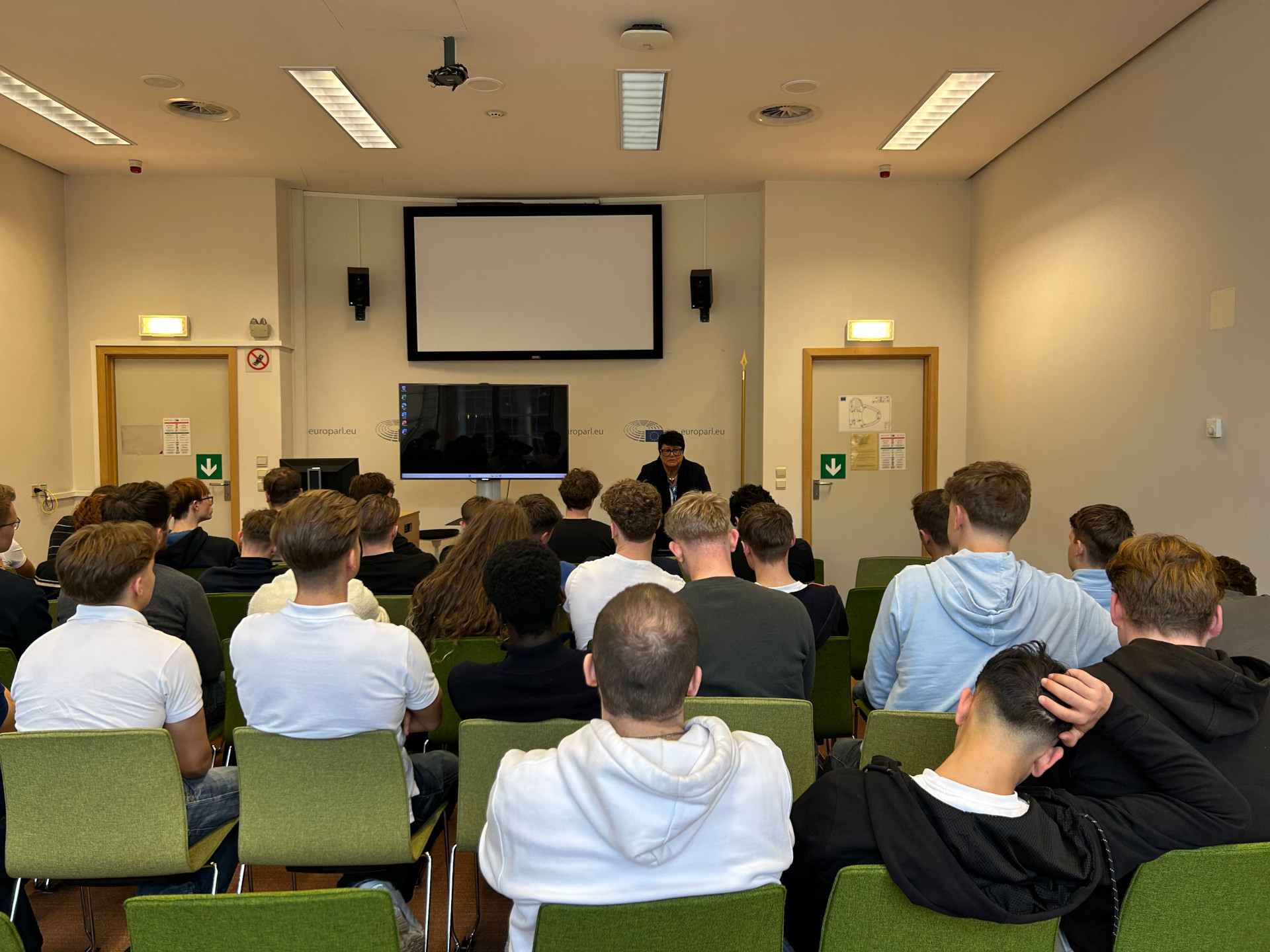 Vor Ort hatte uns - einer mittlerweile guten Tradition entsprechend - der EU-Abgeordnete Axel Voss eingeladen. Zwar konnte er uns in diesem Jahr aufgrund anderer EU-Verpflichtungen nicht persönlich begrüßen, aber er wurde glänzend von niemand Geringerem als der EU-Vizepräsidentin Anja Verheyen vertreten, die sich sehr viel Zeit nahm, um die vielen und wirklich qualifizierten und durchaus auch kritischen Fragen unserer Jungen ausgesprochen kompetent zu beantworten, und unmittelbare Einblicke in die Parlamentsarbeit und in das Machtgefüge der EU gab.