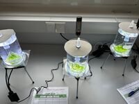 Die zweite Gruppe unseres Kurses begab sich derweil an die Untersuchung der Sauerstoffabgabe von der Elodea Densa in herkömmlichen Leitungswasser, in einer Natriumcarbonat-Lösung (0,2%), also CO2-angereichertem Wasser, sowie in abgekochten Wasser. Bei Letzterer konnte jedoch die niedrigste und bei der Natriumcarbonat-Lösung die eindeutig höchste Produktion an Sauerstoff festgestellt werden.
