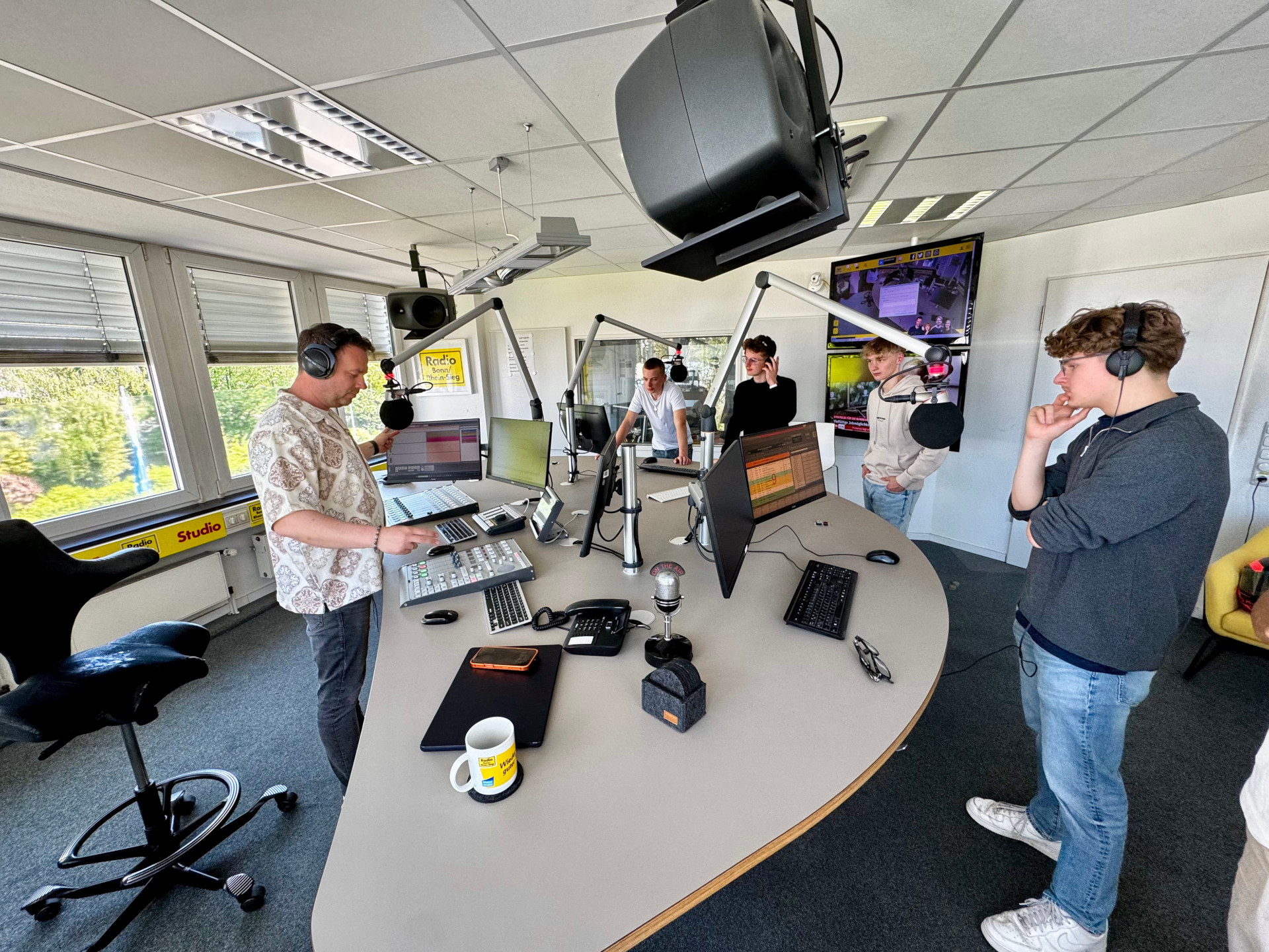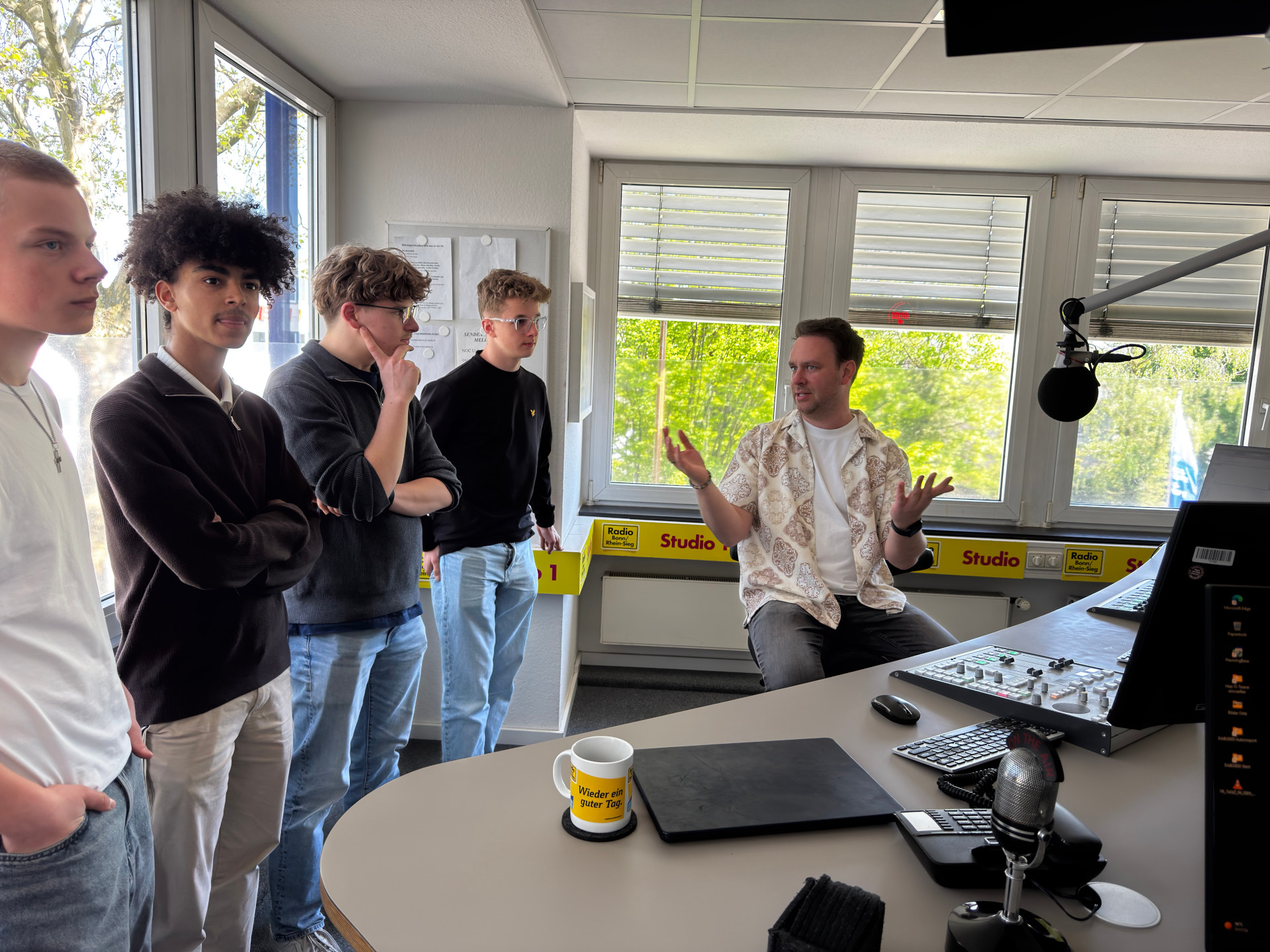 Für die Jungs der AG cojobo media stand gemeinsam mit Herrn Schüller eine besondere Exkursion auf dem Programm: Ein Besuch bei Radio Bonn/Rhein-Sieg in Bonn-Dransdorf. Dort durften die Schüler knapp eine Stunde lang im Studio bei Moderator Nico Jansen während der laufenden Live-Sendung dabei sein und haben spannende Einblicke hinter die Kulissen des Radiobetriebs erhalten.