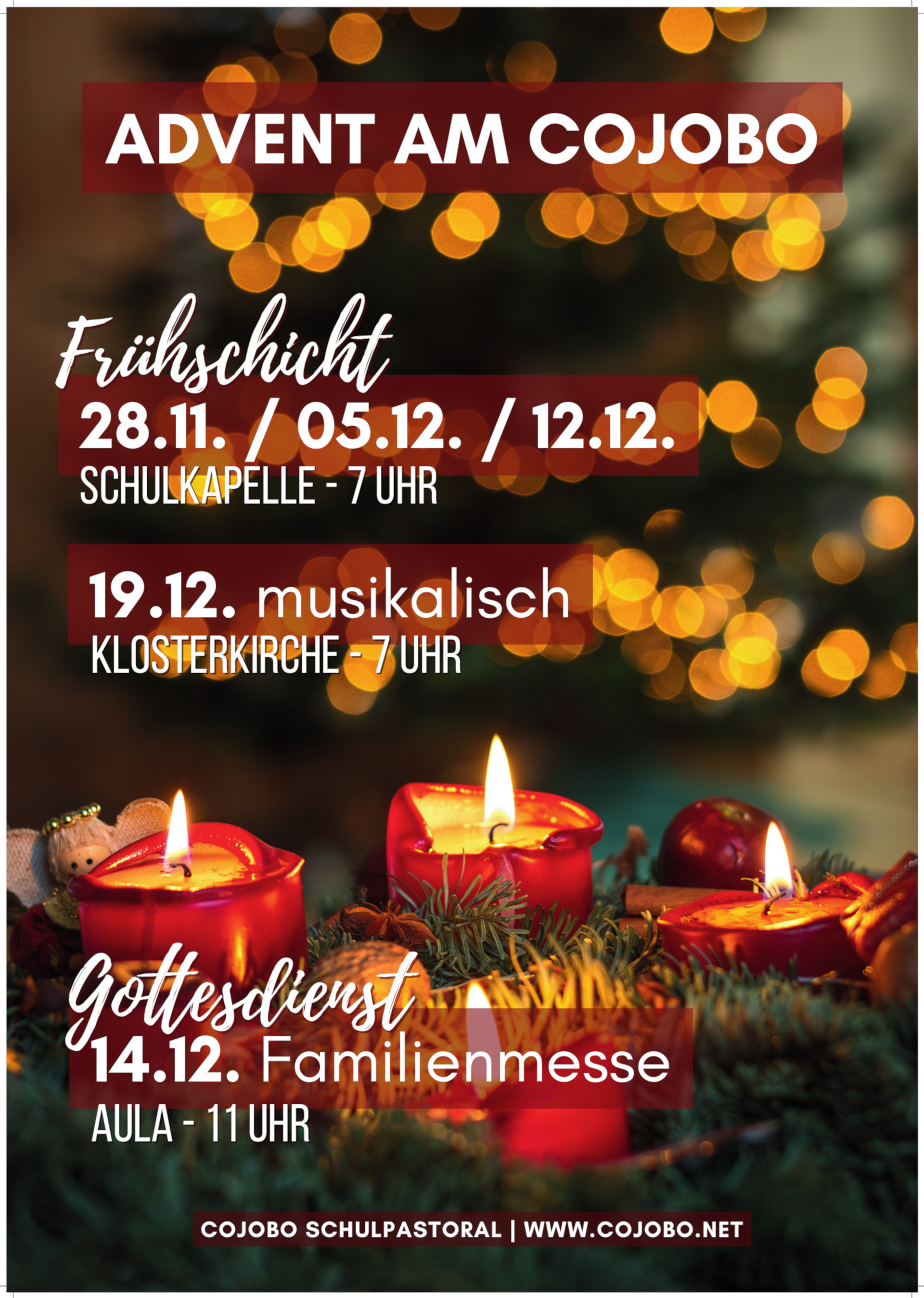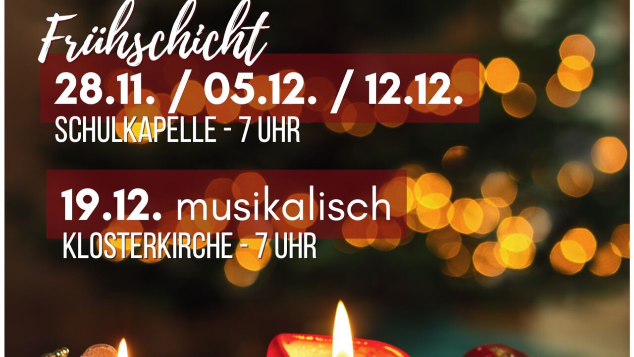Wir laden die ganze Schulgemeinde herzlich zu unseren Frühschichten und zum Familiengottesdienst im Advent ein.