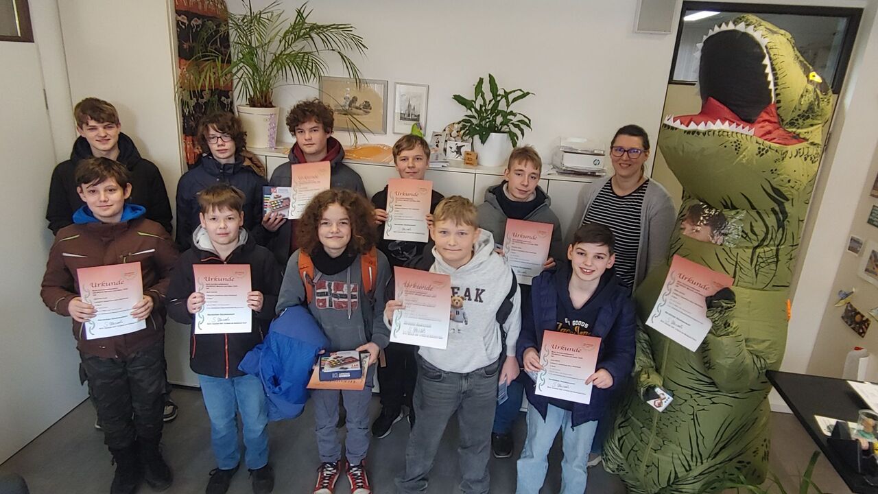 Als Jahrgangsbeste haben Sebastian K. und Tim S. in Klasse 7 und Simon O. in Klasse 8 abgeschlossen– herzlichen Glückwunsch! Ebenso gratulieren wir allen weiteren platzierten Schülern zu ihrer starken Leistung. Ein herzliches Dankeschön gilt dem Förderverein, der die Teilnahmegebühren übernommen und so die Teilnahme ermöglicht hat.