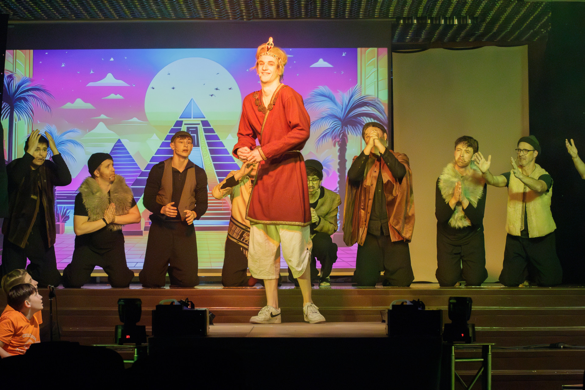 Die Zuschauer wurden auf eine Reise nach Kanaan und ins alte Ägypten mitgenommen, wo sie die biblische Geschichte von Joseph und seinen Brüdern in einer bunten, bisweilen schrillen und musikalisch ausgesprochen vielfältigen Inszenierung miterleben durften. Neben den gesanglichen und schauspielerischen Leistungen beeindruckten ein glänzend aufgelegtes Orchester sowie zahlreiche Licht- und Spezialeffekte, für die unsere Technik AG verantwortlich zeichnete.