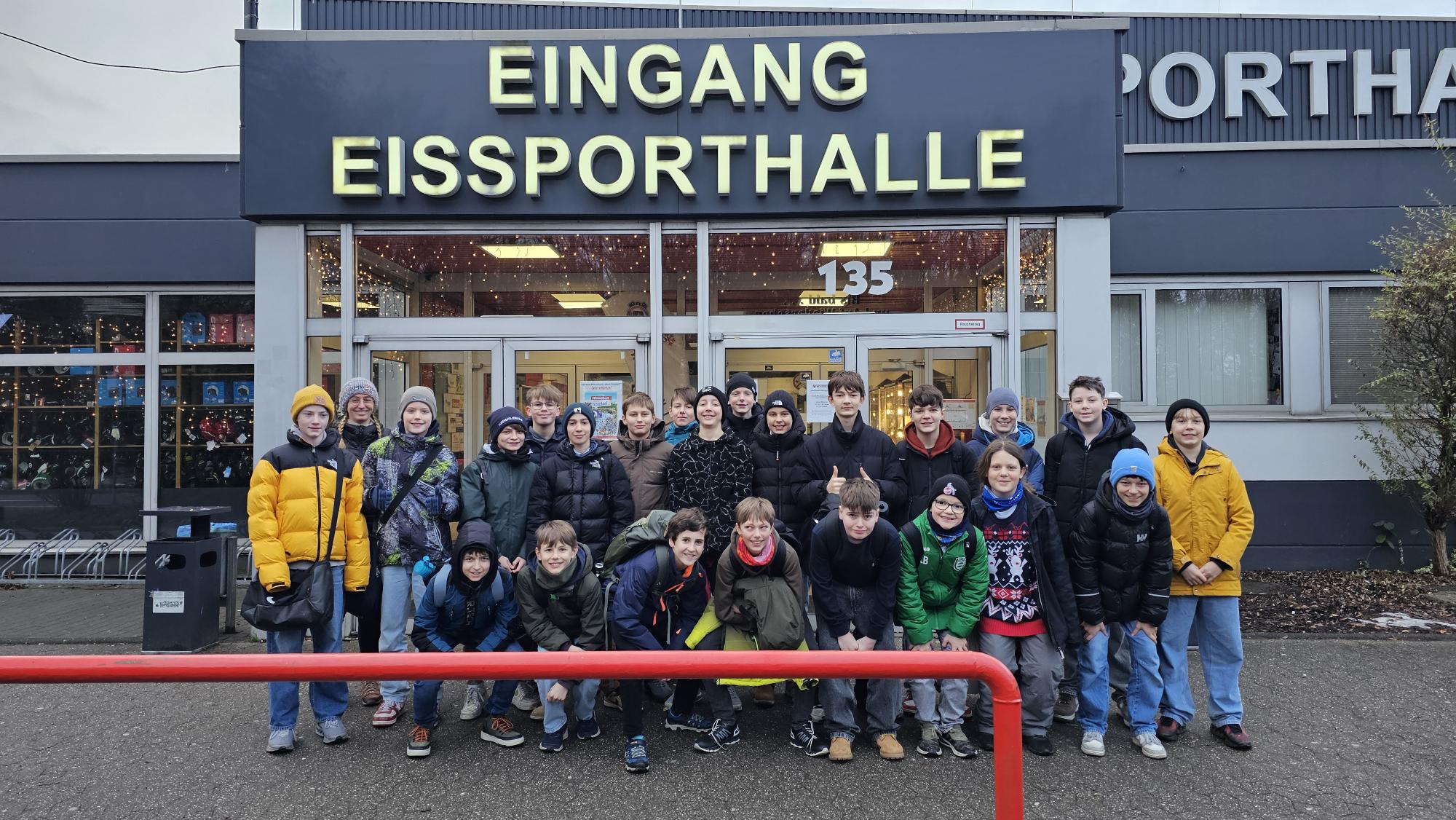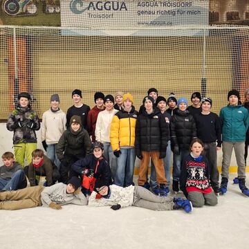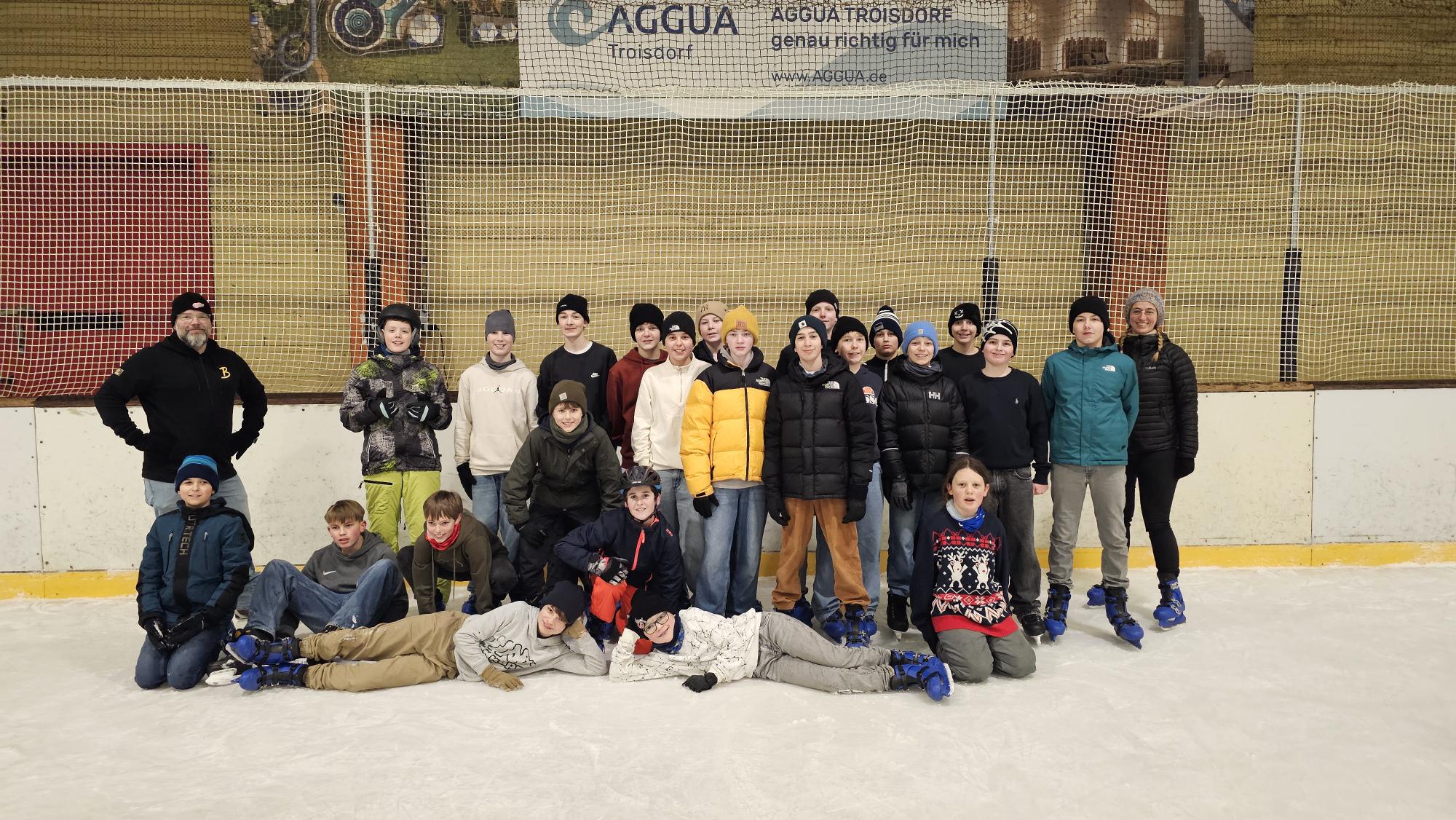 Als Anerkennung für diese Leistung durfte sich die Klasse über einen besonderen Preis freuen: einen unterrichtsfreien Tag mit gemeinsamem Schlittschuhlaufen. Ziel des Ausflugs war in diesem Jahr die Eishalle Troisdorf, wo die Schüler einen sportlichen und fröhlichen Tag auf dem Eis verbrachten. Ob erste vorsichtige Schritte oder bereits sichere Runden – alle wagten sich aufs Eis, unterstützten sich gegenseitig und hatten sichtlich Freude an der gemeinsamen Aktivität.