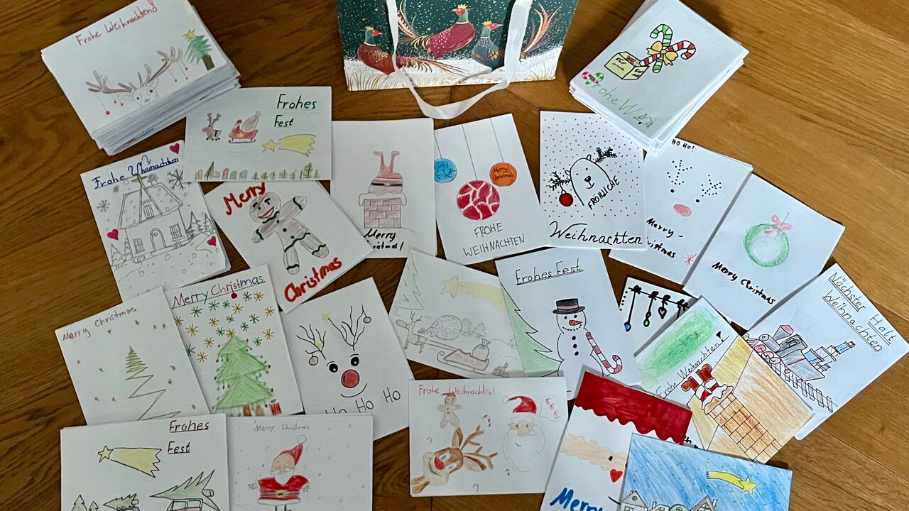 Auch in diesem Jahr haben die Schüler der Klasse G7b wieder mit viel Kreativität und Herz über 90 Weihnachtskarten für das benachbarte Altenheim gestaltet.