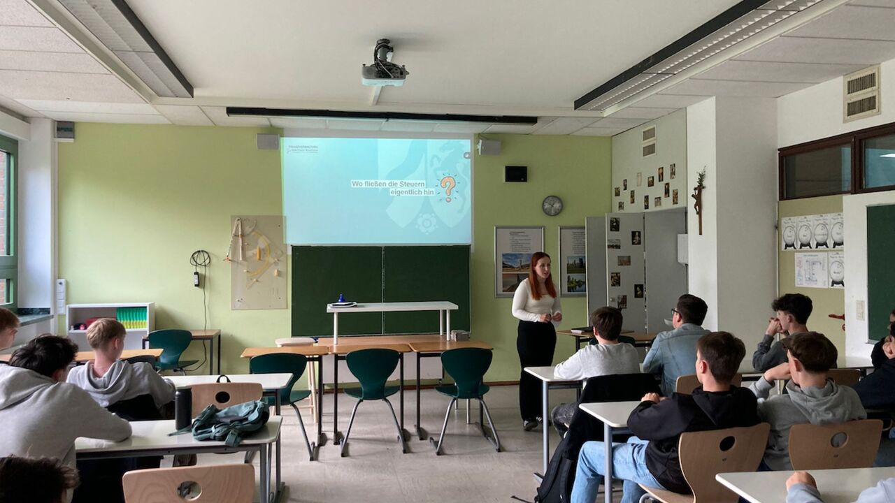 Am Dienstag, den 28.5.2024 hatten die Schüler der R10a der Realschule die Gelegenheit, an einem aufschlussreichen Vortrag zum Thema „Wo fließen unsere Steuern hin?“ teilzunehmen. Der Vortrag, gehalten von Frau Ana Güsler, einer erfahrenen Finanzbeamtin, brachte den Jugendlichen das komplexe Thema der Steuerverwendung näher. Frau Güsler begann den Vortrag mit einer Einführung in die verschiedenen Steuerarten. Sie erläuterte, wie diese Steuern erhoben werden und welche staatlichen Ebenen – Bund, Länder und Gemeinden – davon profitieren. Besonders interessant fanden die Schüler die detaillierte Aufschlüsselung der Steuerverwendung. Im Anschluss an die Präsentation hatten die Jugendlichen die Möglichkeit, Fragen zu stellen. ( Tina Jahn)
